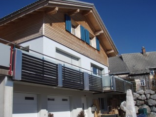 Die SWISSPIPE-Kollektoren werden direkt am Balkongeländer befestigt. Bereits bestehende Geländer-Verblendungen können beibehalten werden. Diese Montage-Variante ist meistens sehr einfach und preiswert zu realisieren und wird daher häufig angewendet.